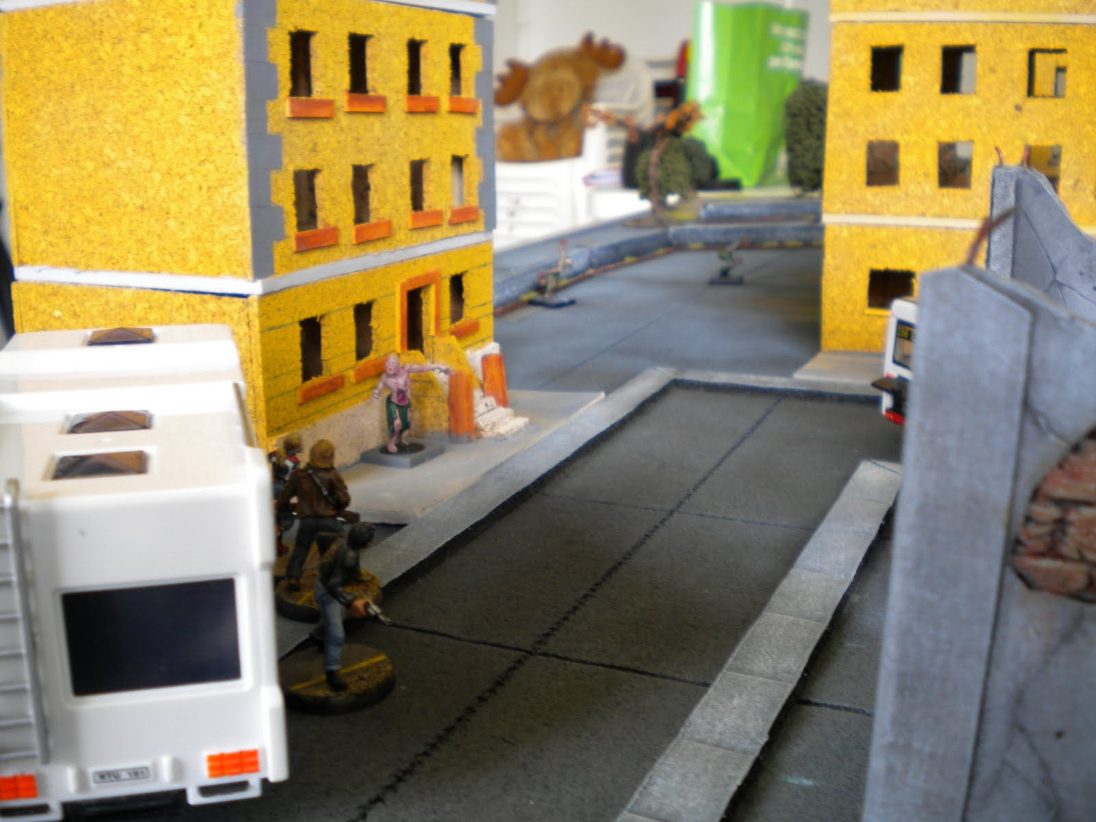 In realtà, per quanto per motivi "narrativi" Kurt sia diventato un tipaccio con la cattiva abitudine di fare troppo rumore, la quantità mostruosa di Zombies che mi sono trovato ad affrontare è stata causata dai pessimi tiri d'iniziativa ( si tira un dado per fazione, per ogni doppio si creavano 1d3 zombies a 20cm da un personaggio della squadra che ha tirato... se poi uno tira tre!! doppi di fila, ecco che la zona diventa movimentata in fretta... )